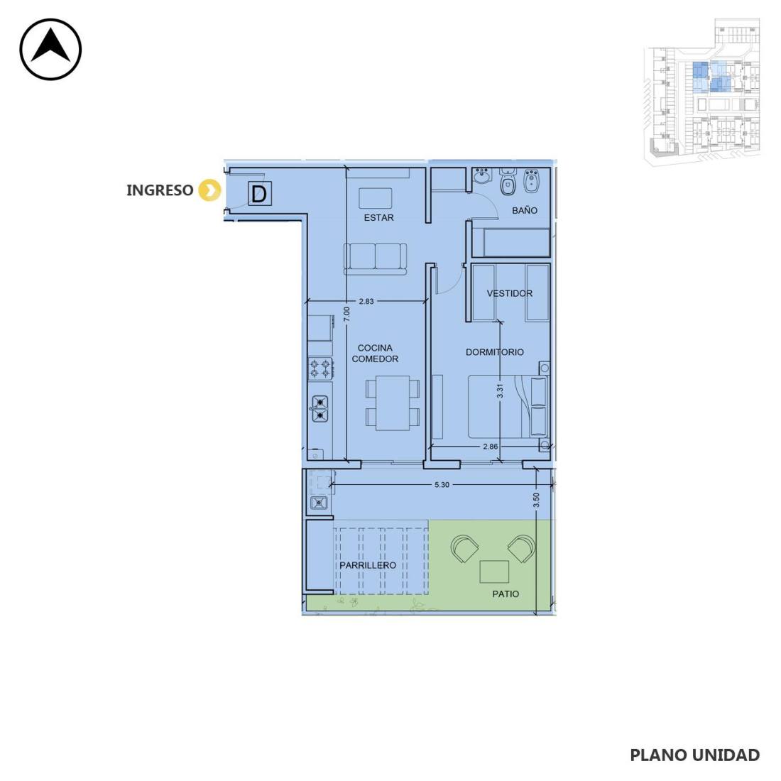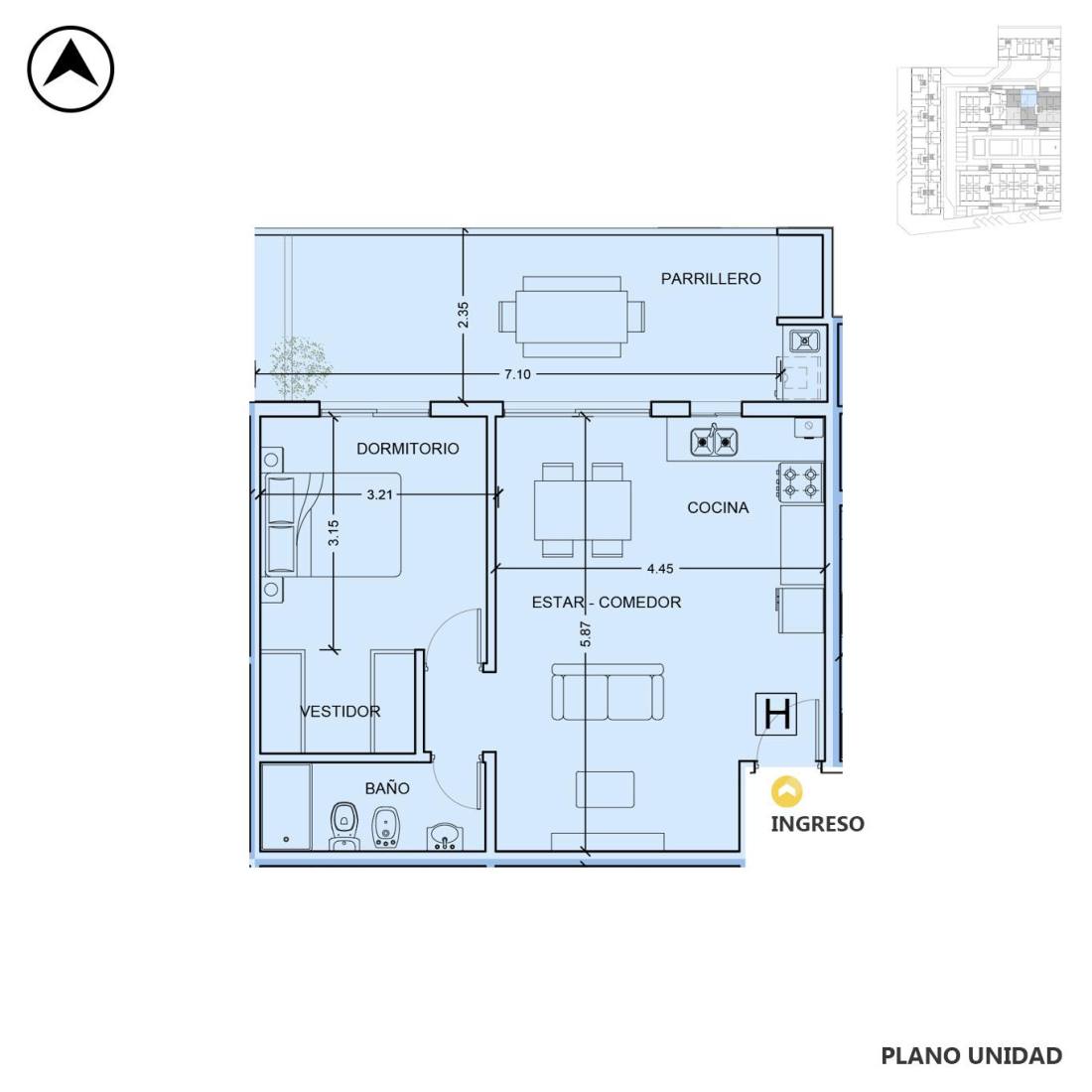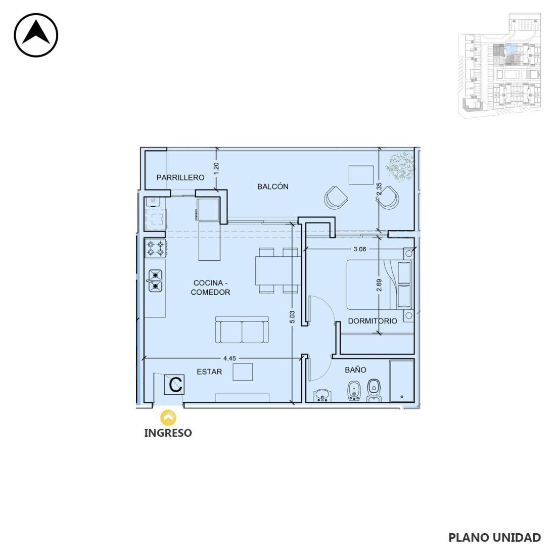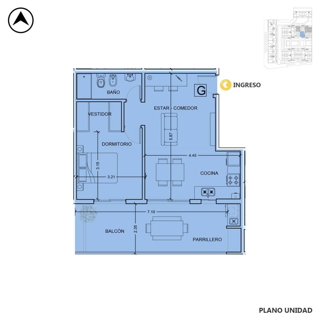 Departamento 2 dormitorios en ventaPiso 2 • Unidad G • Condo Galindo