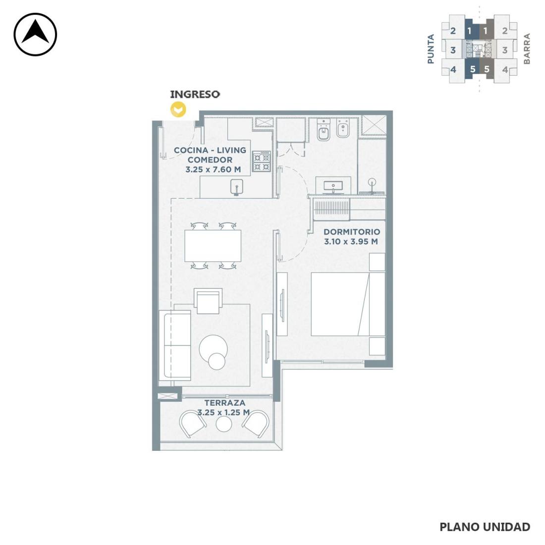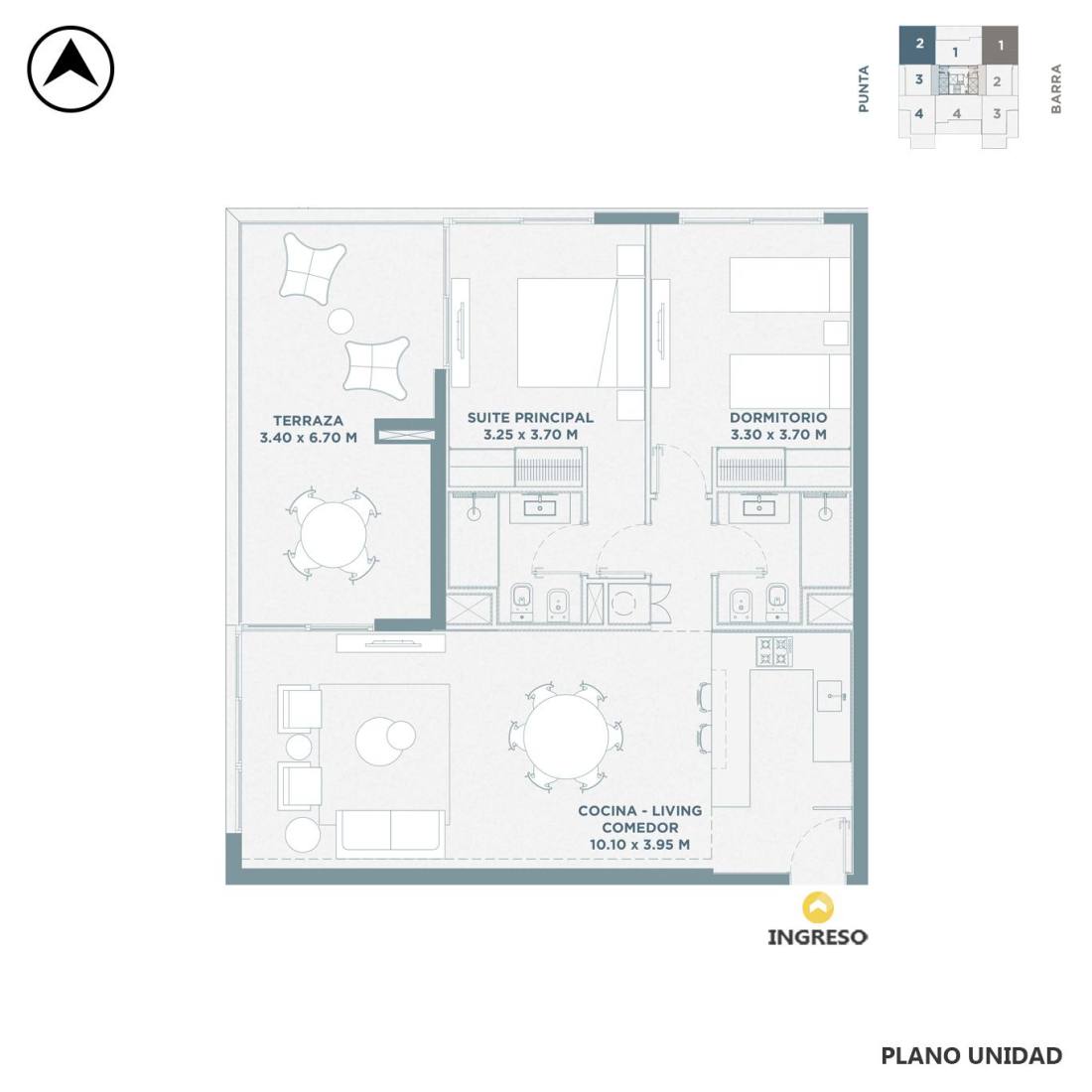 Departamento 2 dormitorios en ventaPiso 2 • Unidad 3 • Barra