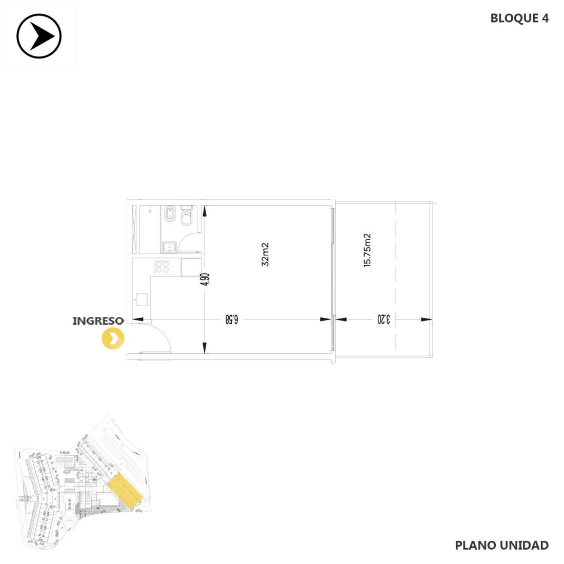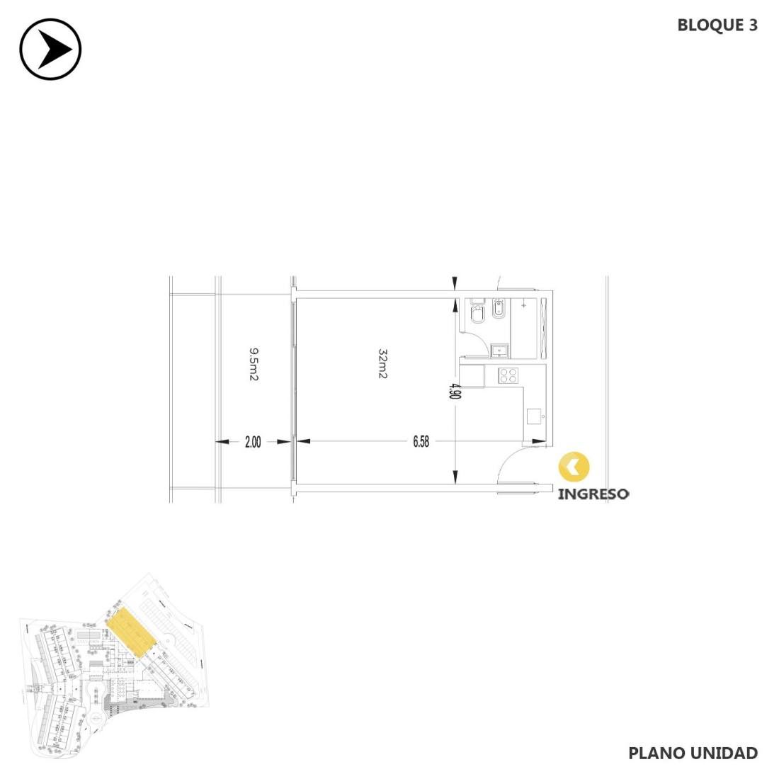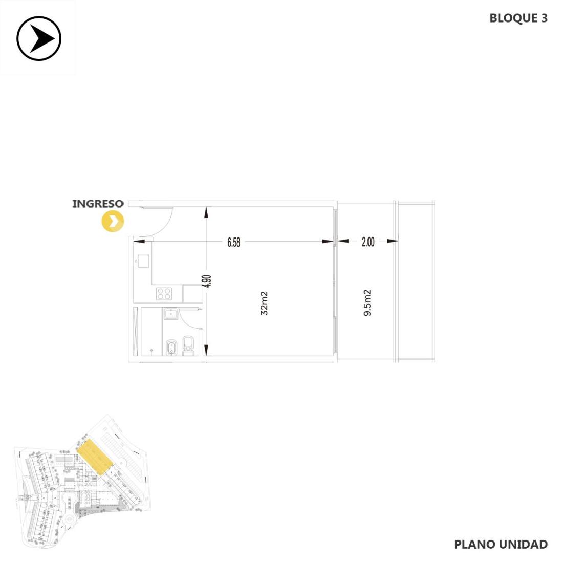 Departamento monoambiente en ventaPiso 3 • • Torre 3