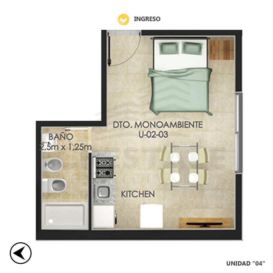 Departamento monoambiente en ventaPiso 1 • Unidad 4