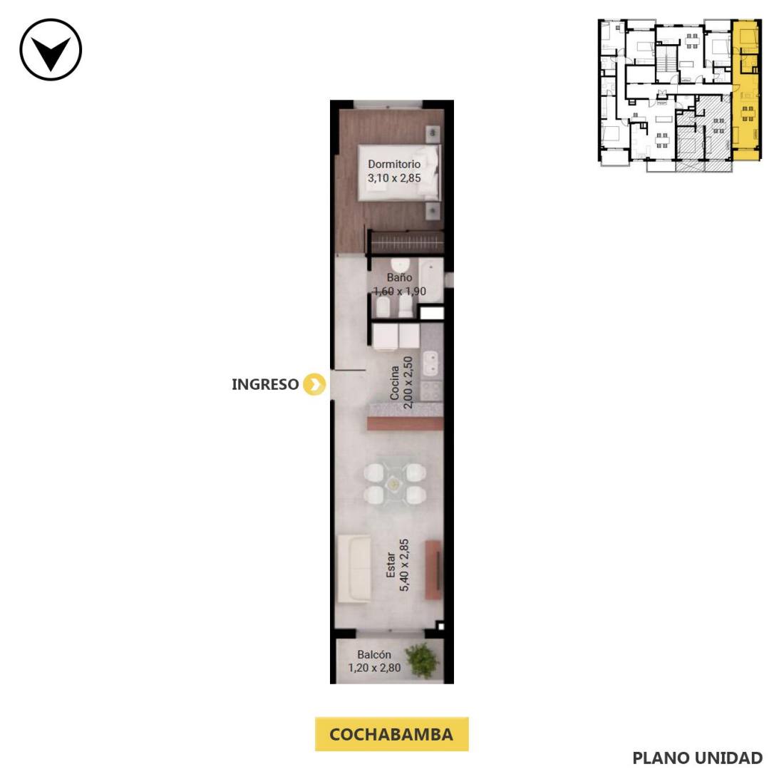 Emprendimiento ubicado a pocos pasos de Av. Pellegrini, una de las arterias más importantes de Rosario. Combina la tranquilidad de un entorno barrial con la comodidad de una ubicación estratégica, cercana a reconocidas instituciones educativas como la Ciudad Universitaria y la Facultad de Ingeniería, además de una amplia oferta gastronómica y comercial. El edificio se compone de planta baja y seis pisos, con unidades de monoambiente, uno y dos dormitorios, todas con balcón al frente y orientación Norte. En planta baja se desarrollan dos locales comerciales y nueve cocheras cubiertas.